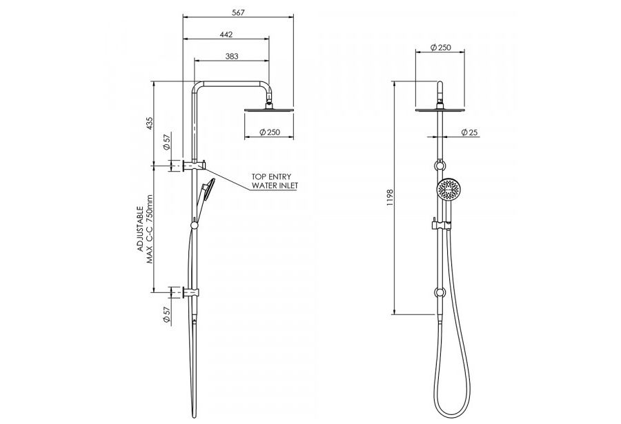 - Shower aperture: Rain head: 171mm | Handpiece: 38mm