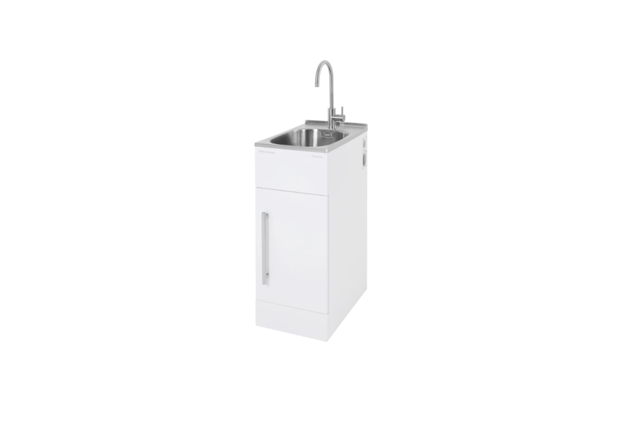STSLIMTTAP3 is a compact slim-sized tub designed for smaller laundries to meet everyday laundry needs. It features a premium stainless steel gooseneck tap and a brushed finish pole handle.